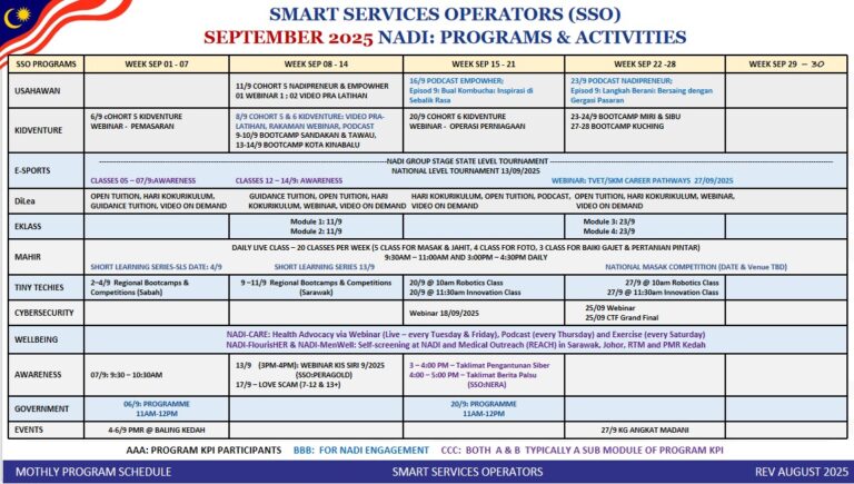 Berikut dilampirkan jadual perancangan aktiviti sepanjang bulan SEPTEMBER 2025.