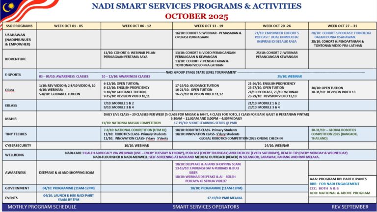 Berikut dilampirkan jadual perancangan aktiviti sepanjang bulan OKTOBER 2025.