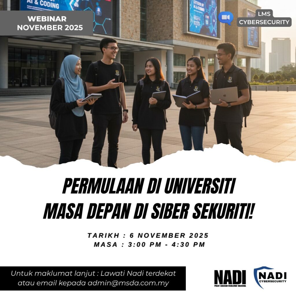WEBINAR NADI X CYBERSECURITY – PERMULAAN DI UNIVERSITI, MASA DEPAN DI SIBER SEKURITI!